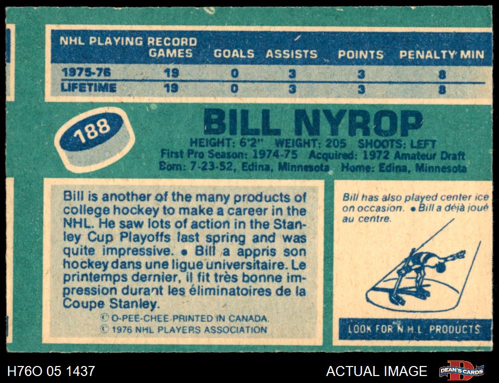 1976 O-Pee-Chee NHL #188 Bill Nyrop 2 - GOOD