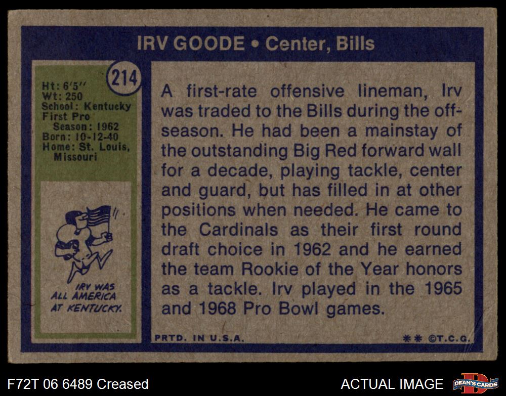 1972 Topps #214 Irv Goode Front Thumbnail
