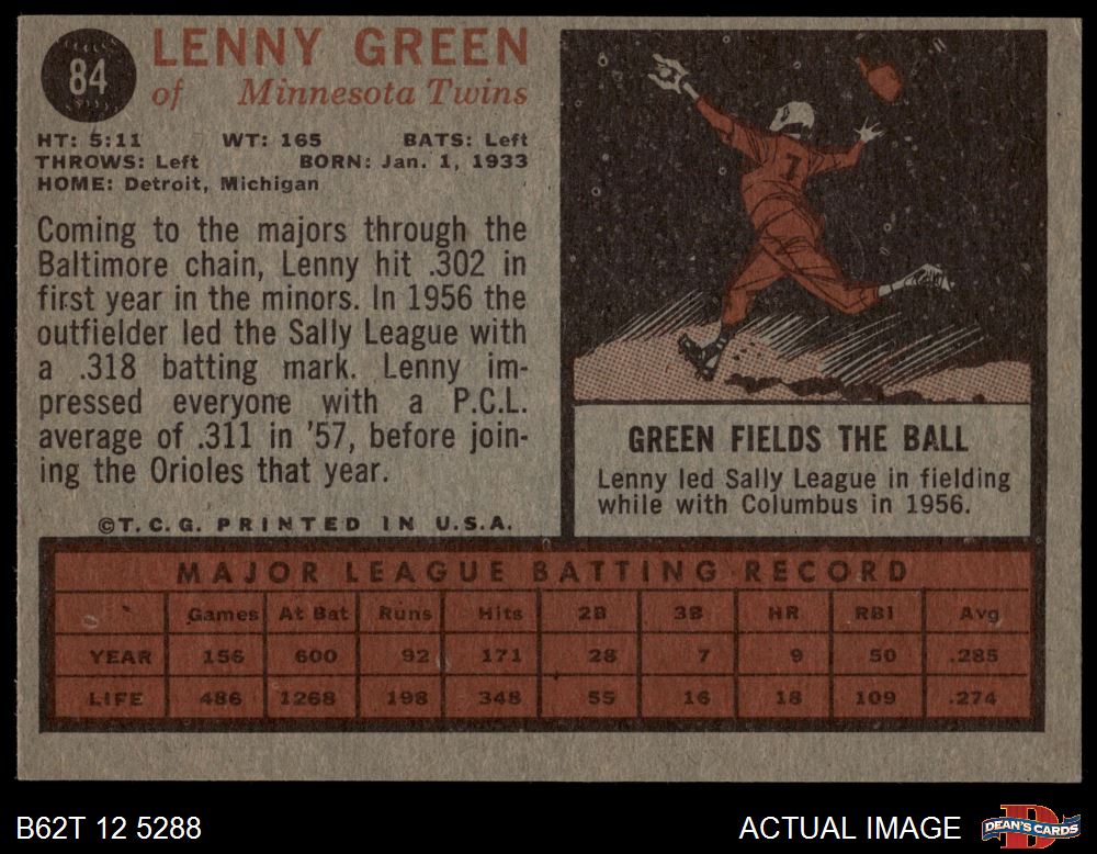 1962 Topps #84 Lenny Green 4 - VG/EX