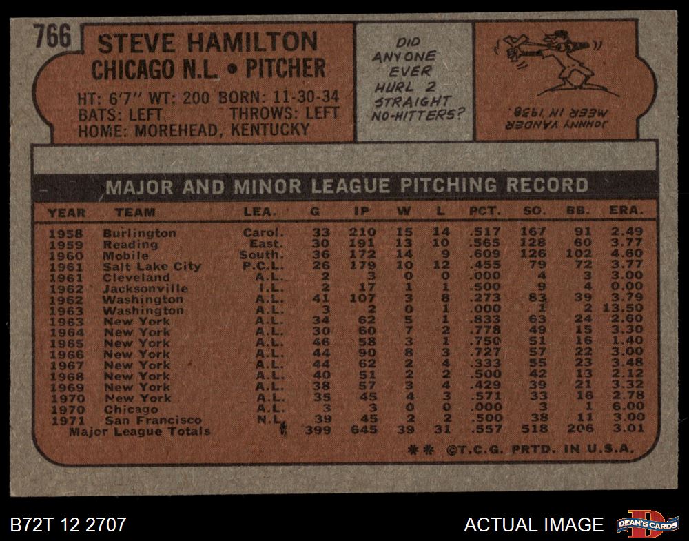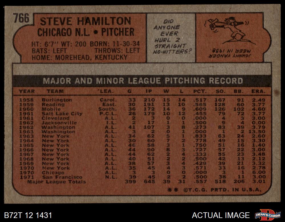 1972 Topps #766 Steve Hamilton