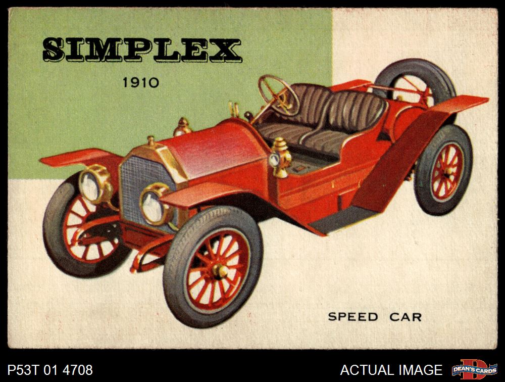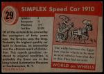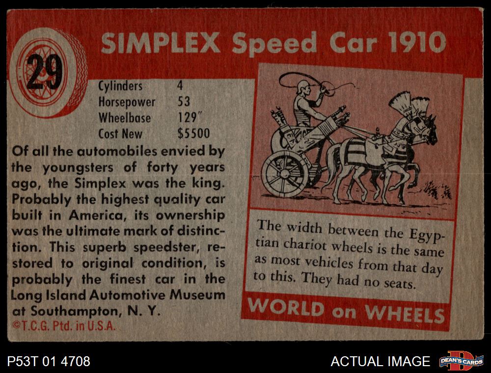 1954 Topps World on Wheels #29 Simplex Speed Car 1910 5 - EX