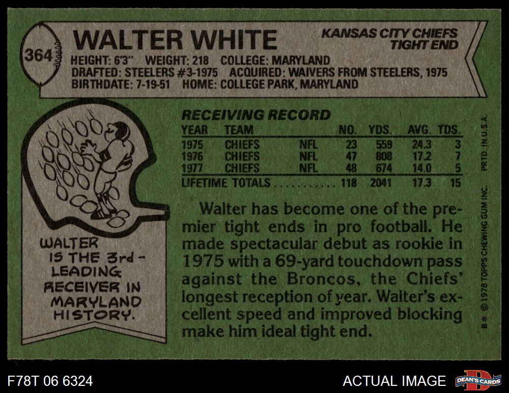 1978 Topps #364 Walter White 6 - EX/MT