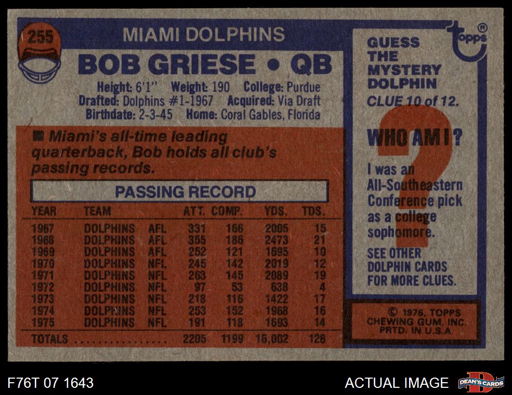 1976 Topps #255 Bob Griese 3.5 - VG+