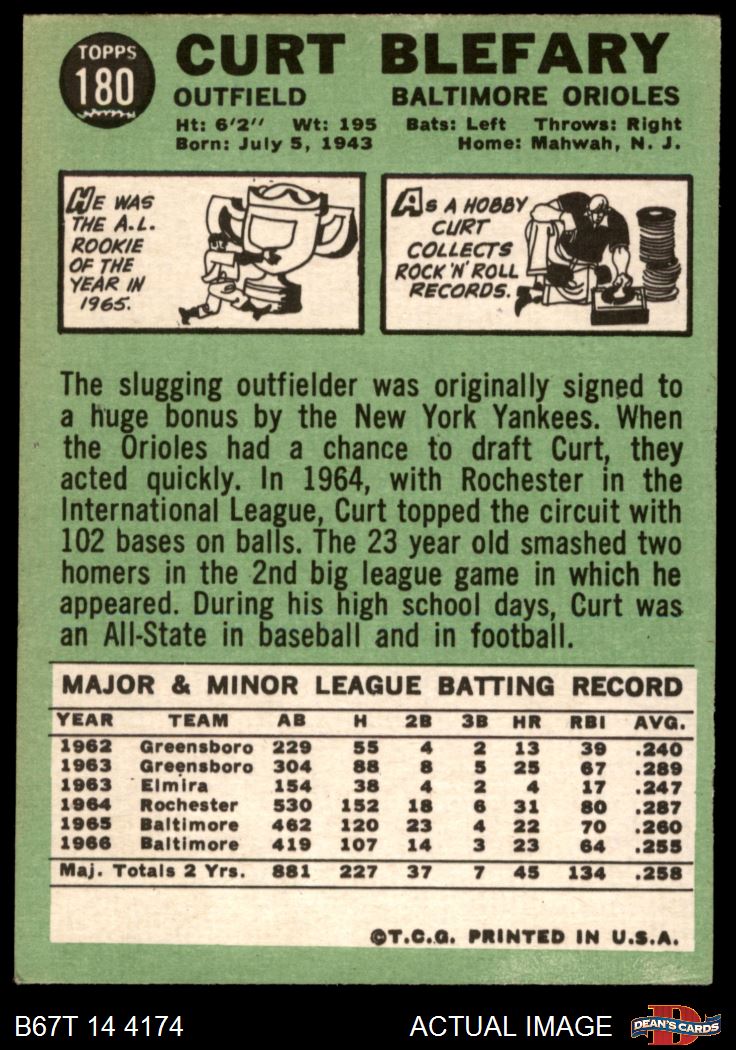 1967 Topps #180 Curt Blefary 4 - VG/EX