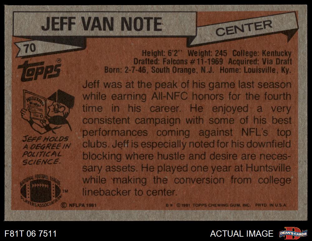 1981 Topps #70 Jeff Van Note 8 - NM/MT
