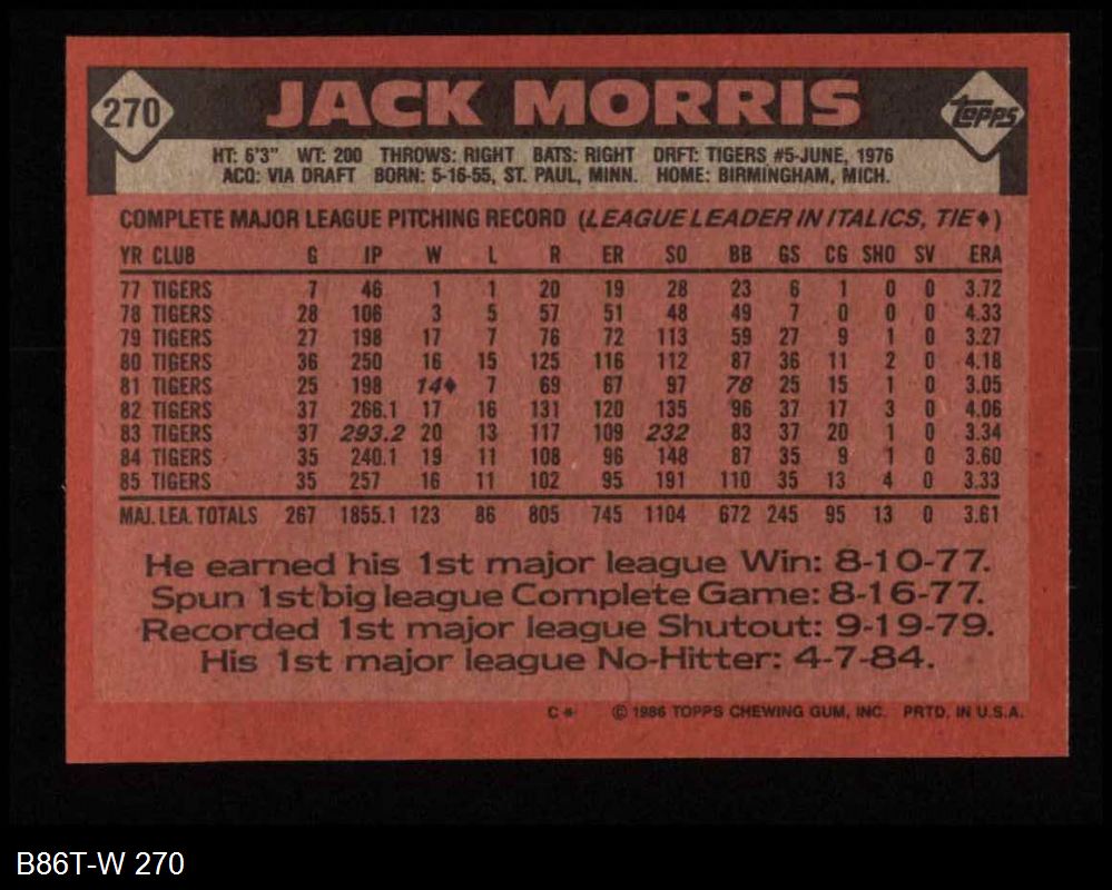 1986 Topps #270 Jack Morris