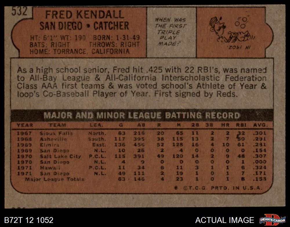 1972 Topps #532 Fred Kendall 3 - VG