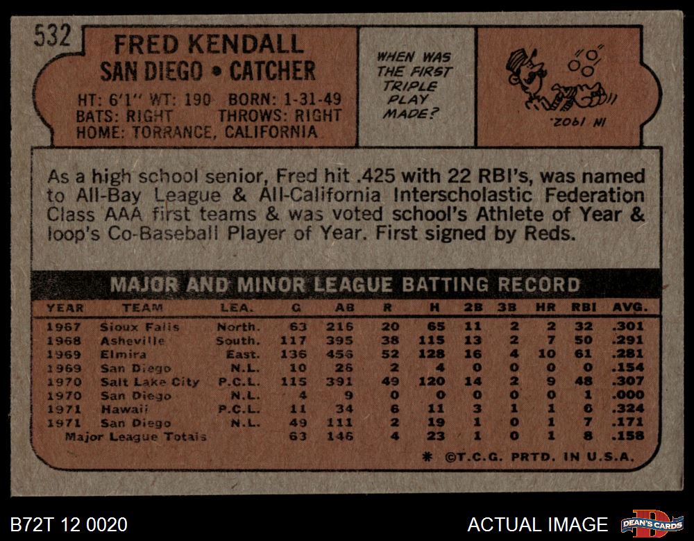 1972 Topps #532 Fred Kendall 4 - VG/EX