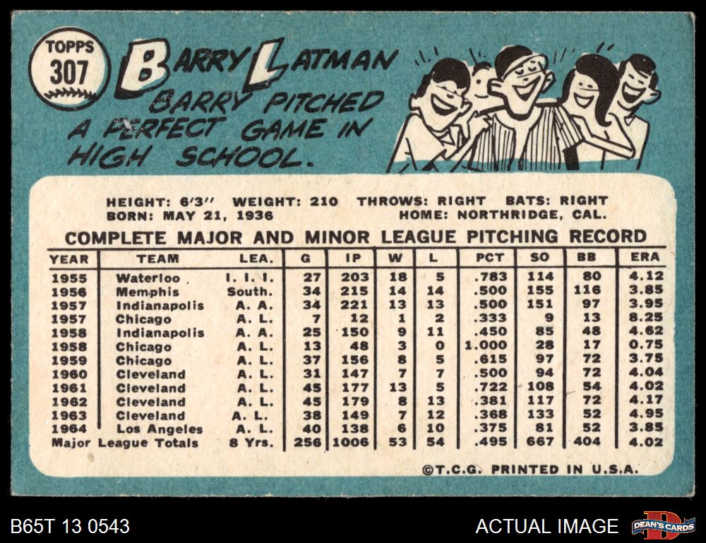 1965 Topps #307 Barry Latman Front Thumbnail