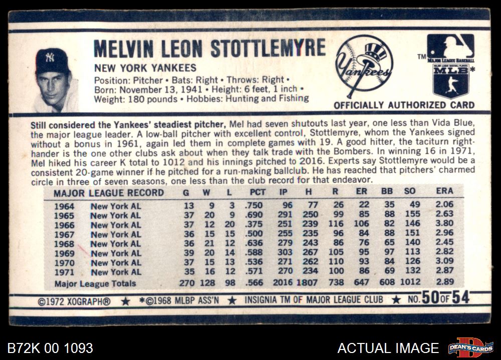 1972 Kellogg's #50 Mel Stottlemyre 4 - VG/EX