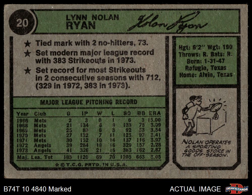1974 Topps #20 Nolan Ryan 1.5 - FAIR