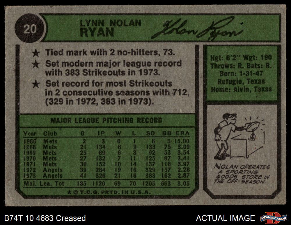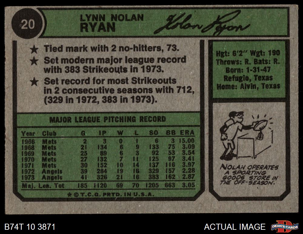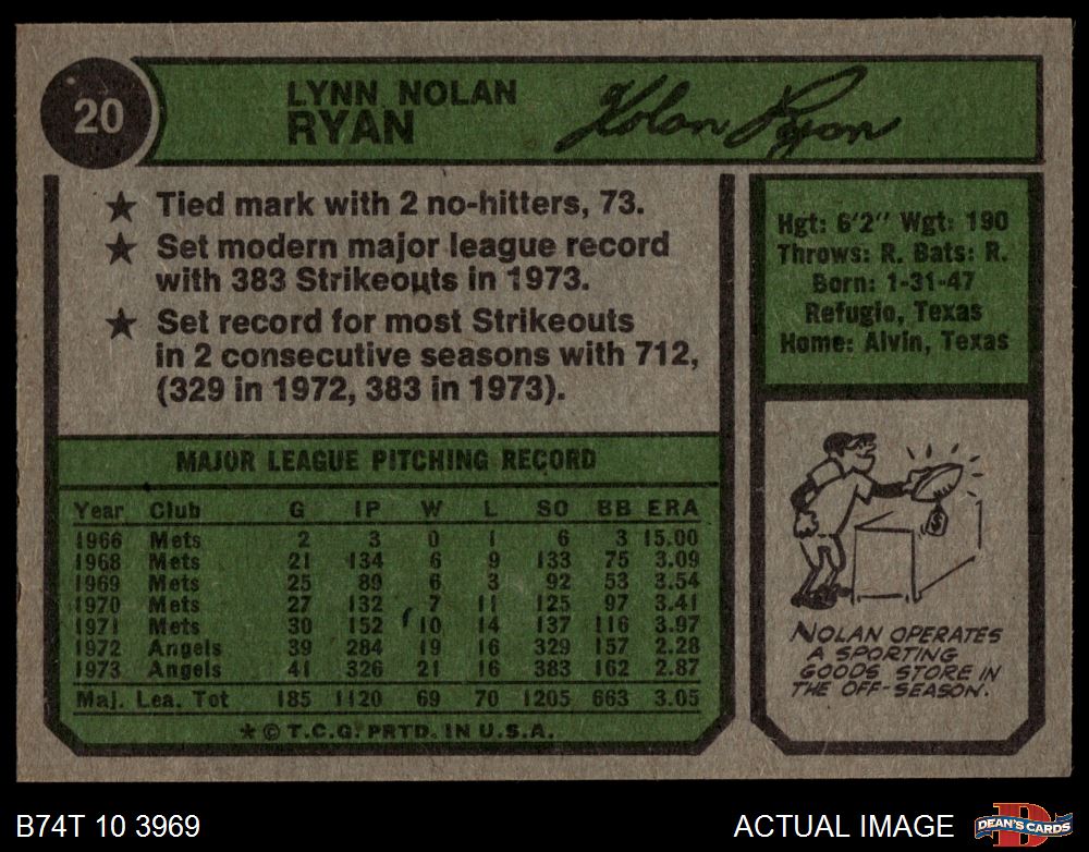 1974 Topps #20 Nolan Ryan
