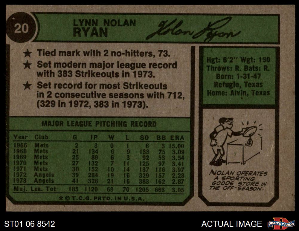 1974 Topps #20 Nolan Ryan 2 - GOOD