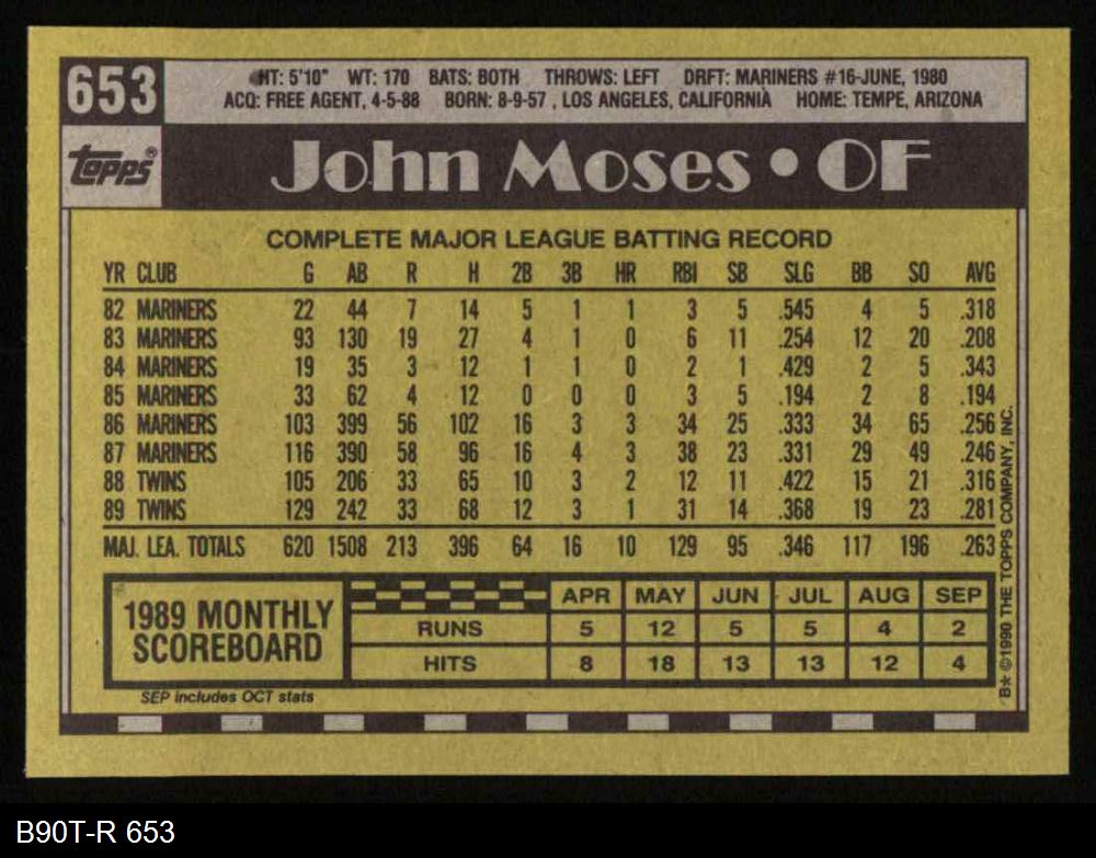 1990 Topps #653 John Moses