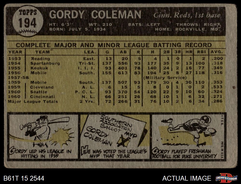 1961 Topps #194 Gordy Coleman 1 - POOR