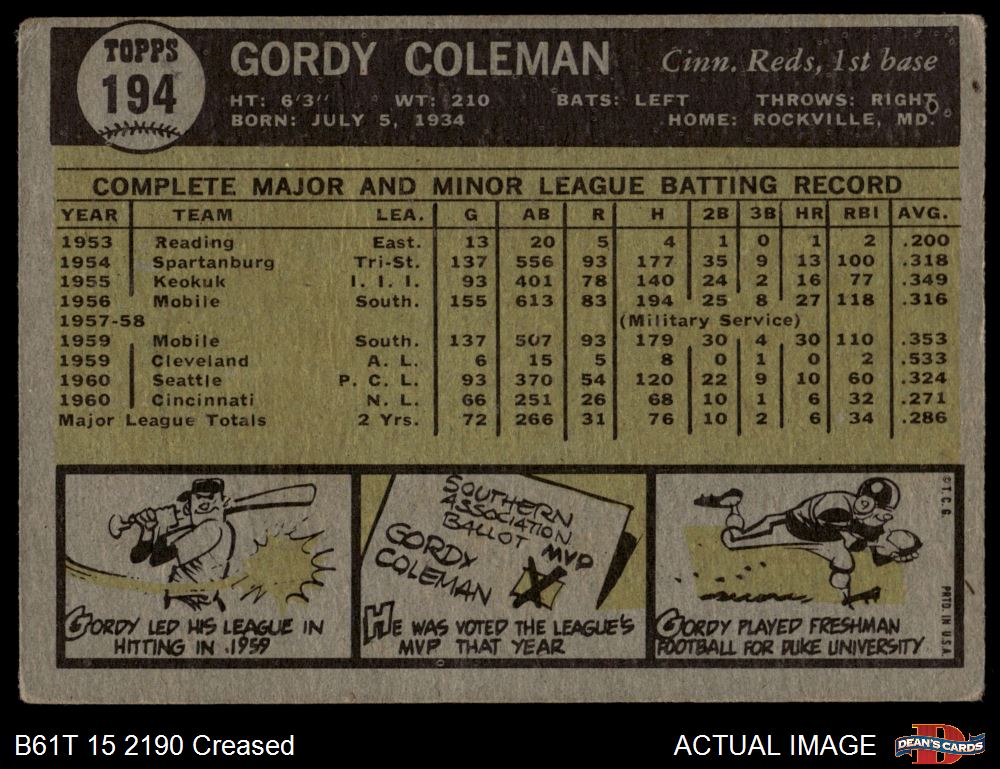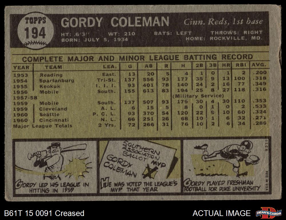 1961 Topps #194 Gordy Coleman 2 - GOOD
