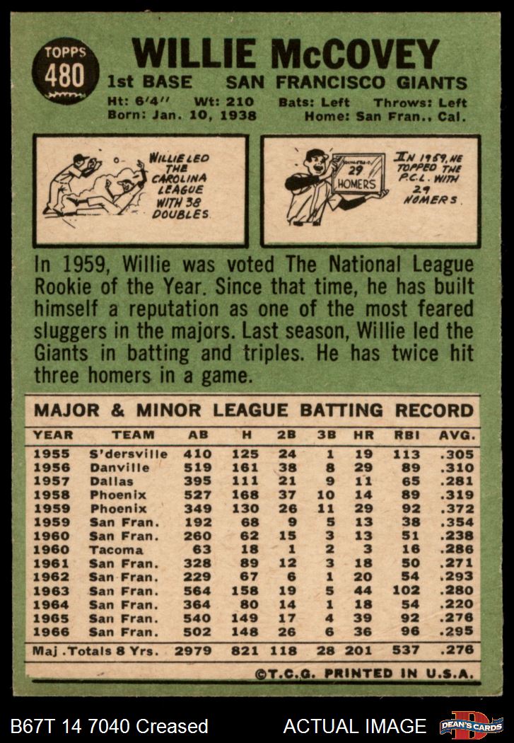 1967 Topps #480 Willie McCovey 3 - VG