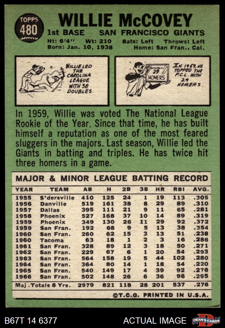 1967 Topps #480 Willie McCovey 6.5 - EX/MT+