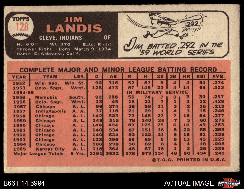1966 Topps #128 Jim Landis