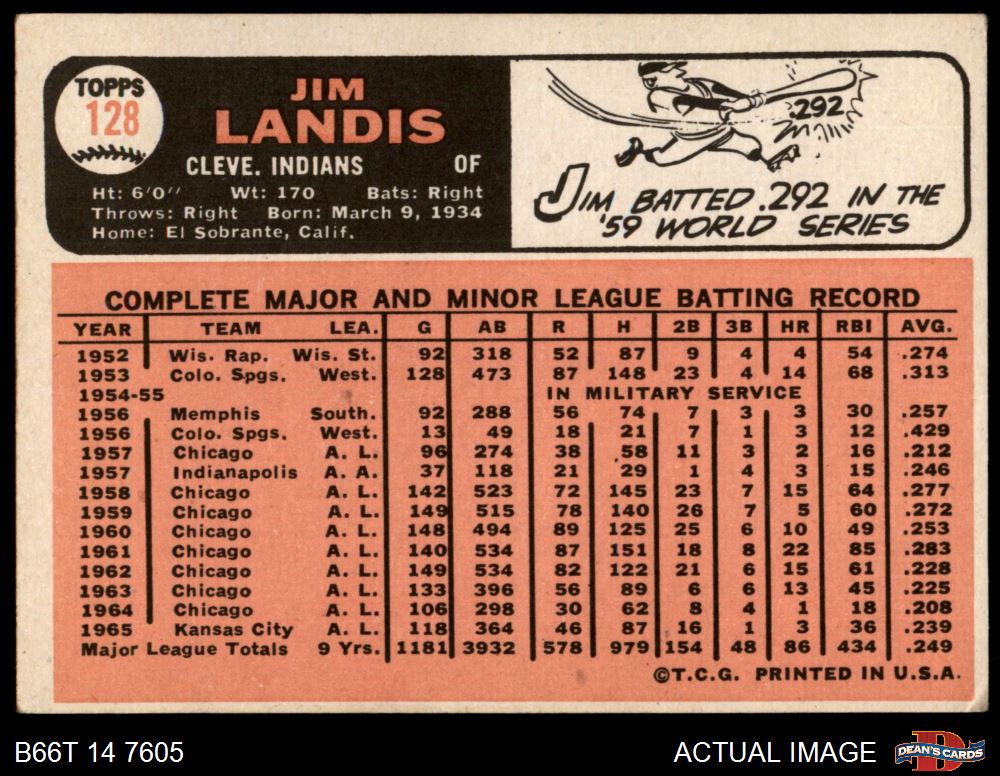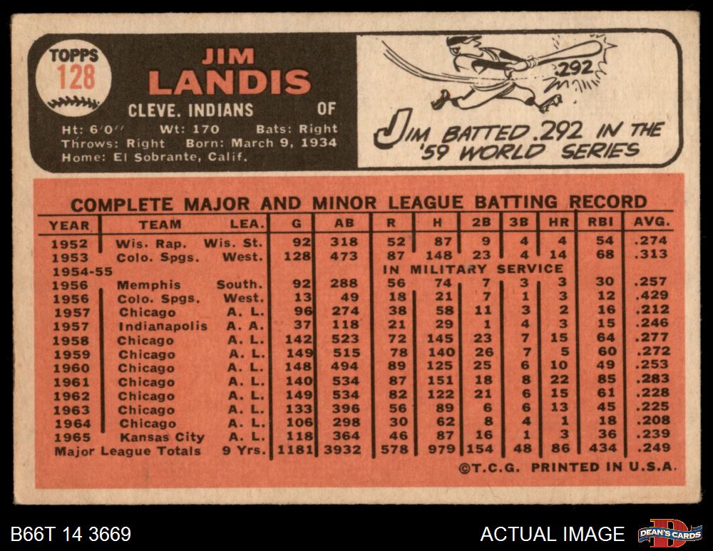 1966 Topps #128 Jim Landis 4 - VG/EX