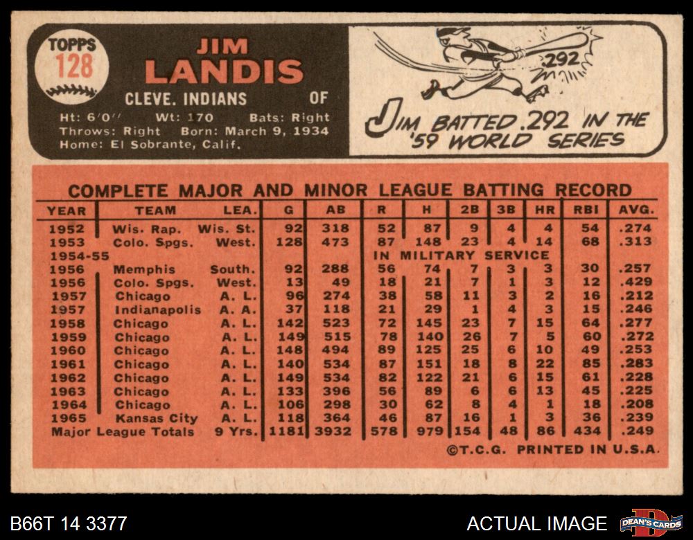 1966 Topps #128 Jim Landis 5 - EX