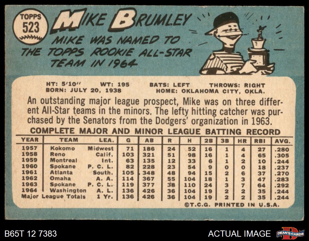 1965 Topps #523 Mike Brumley 2 - GOOD