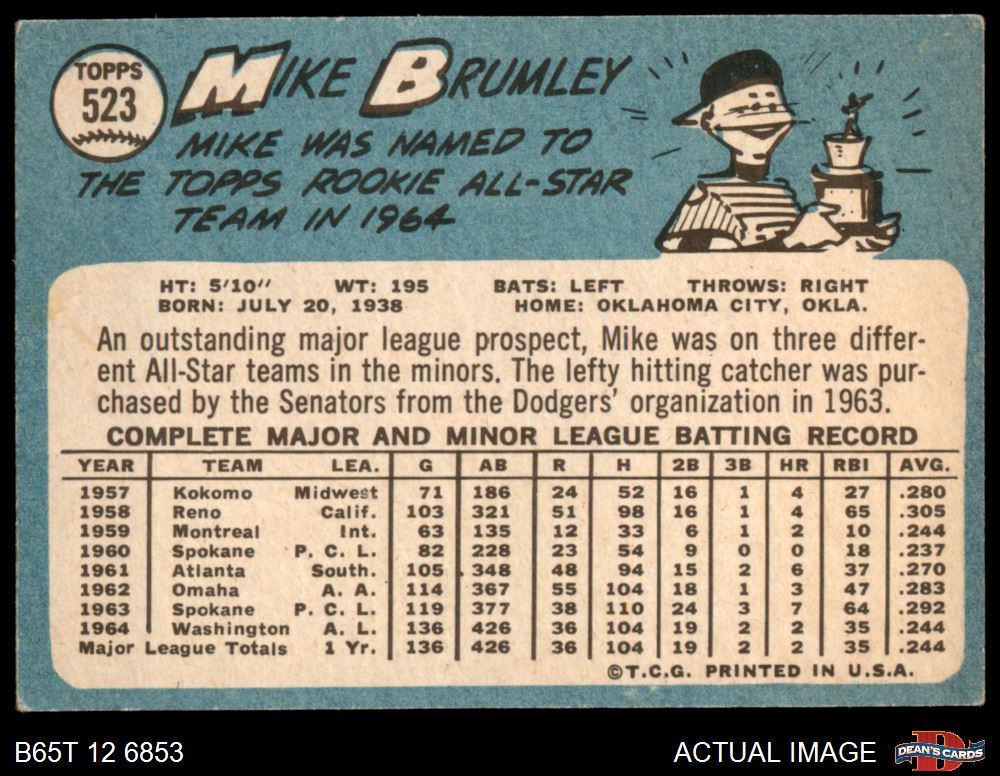 1965 Topps #523 Mike Brumley 4 - VG/EX