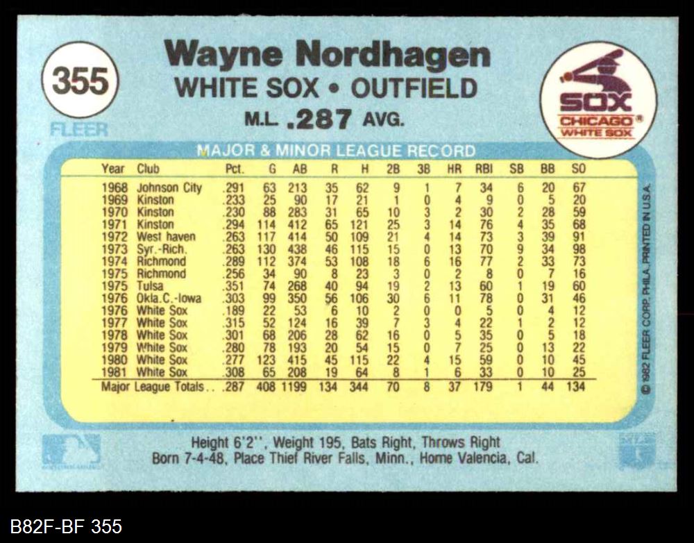 1982 Fleer #355 Wayne Nordhagen