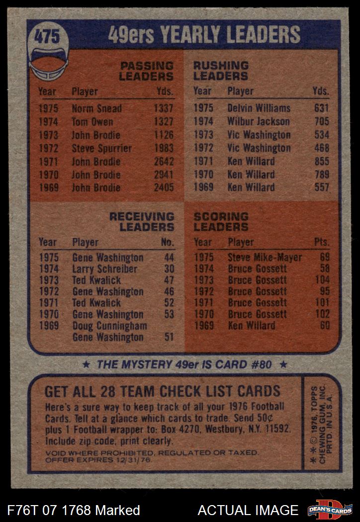 1976 Topps #475  49ers Team Checklist Front Thumbnail