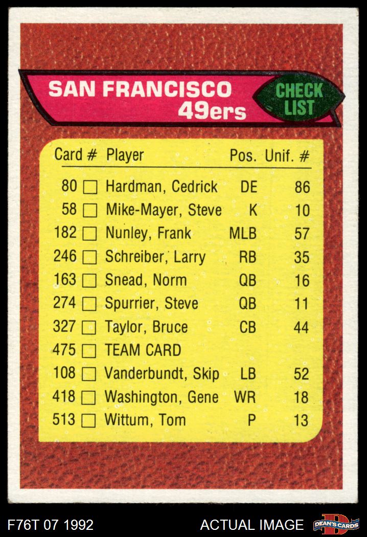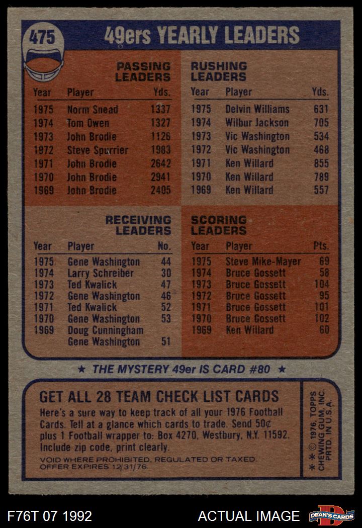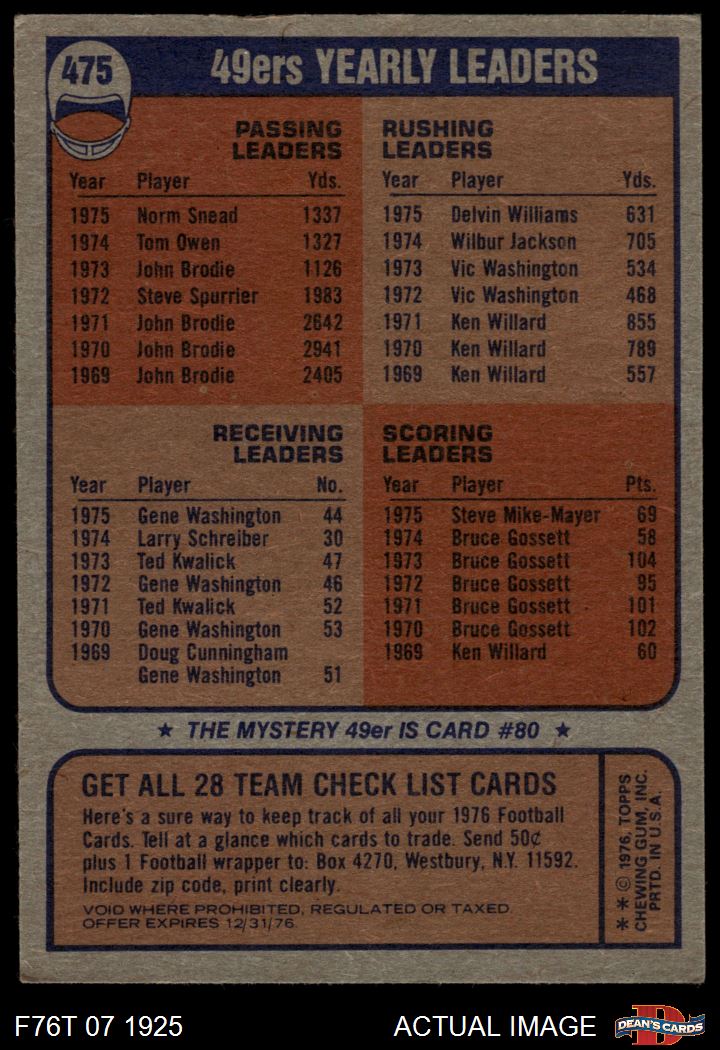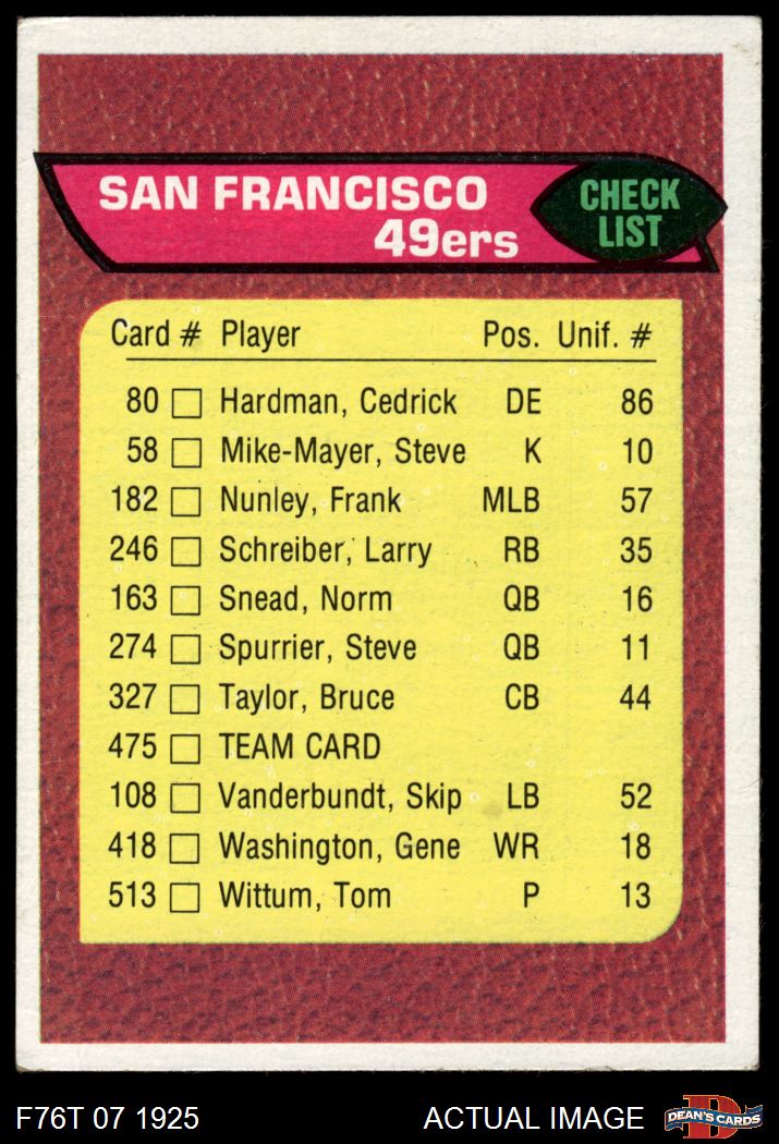 1976 Topps #475 49ers Team Checklist