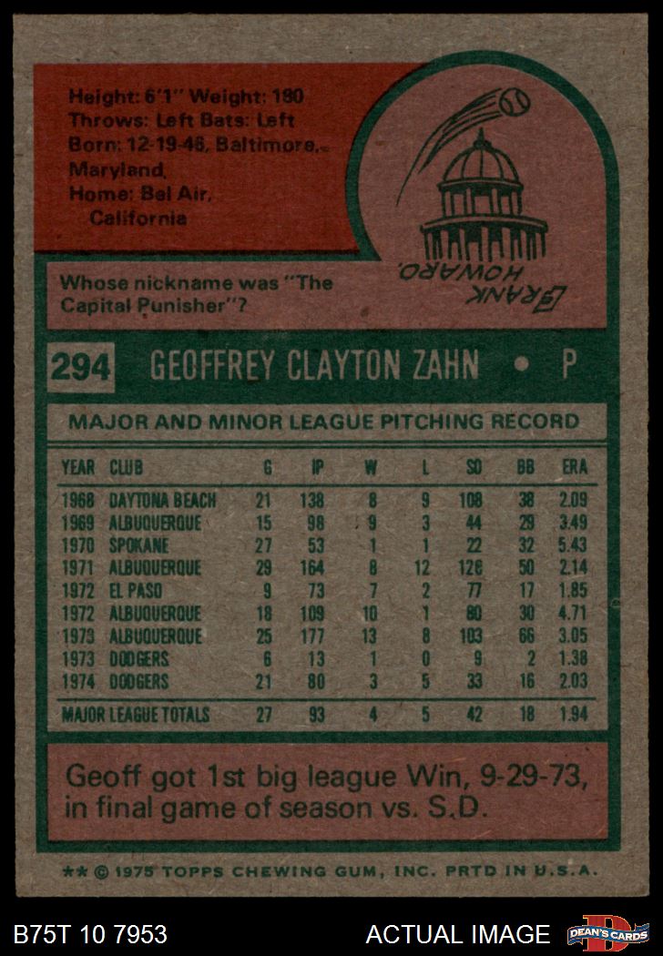 1975 Topps #294 Geoff Zahn 6 - EX/MT