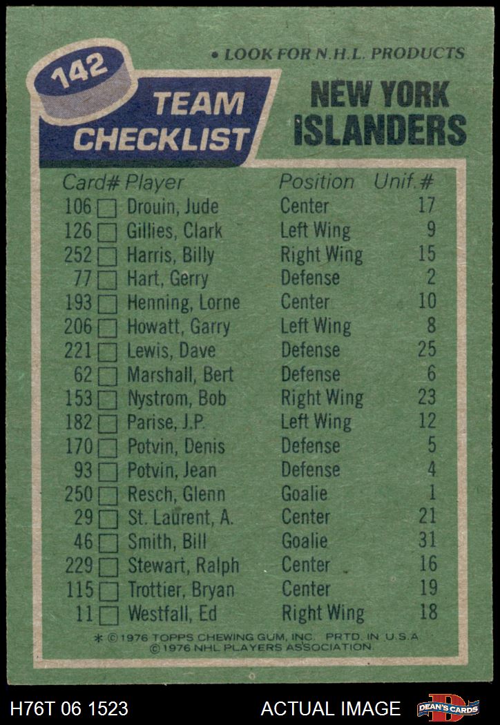 1976 Topps #142 Islanders Team 6 - EX/MT