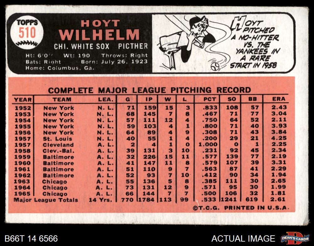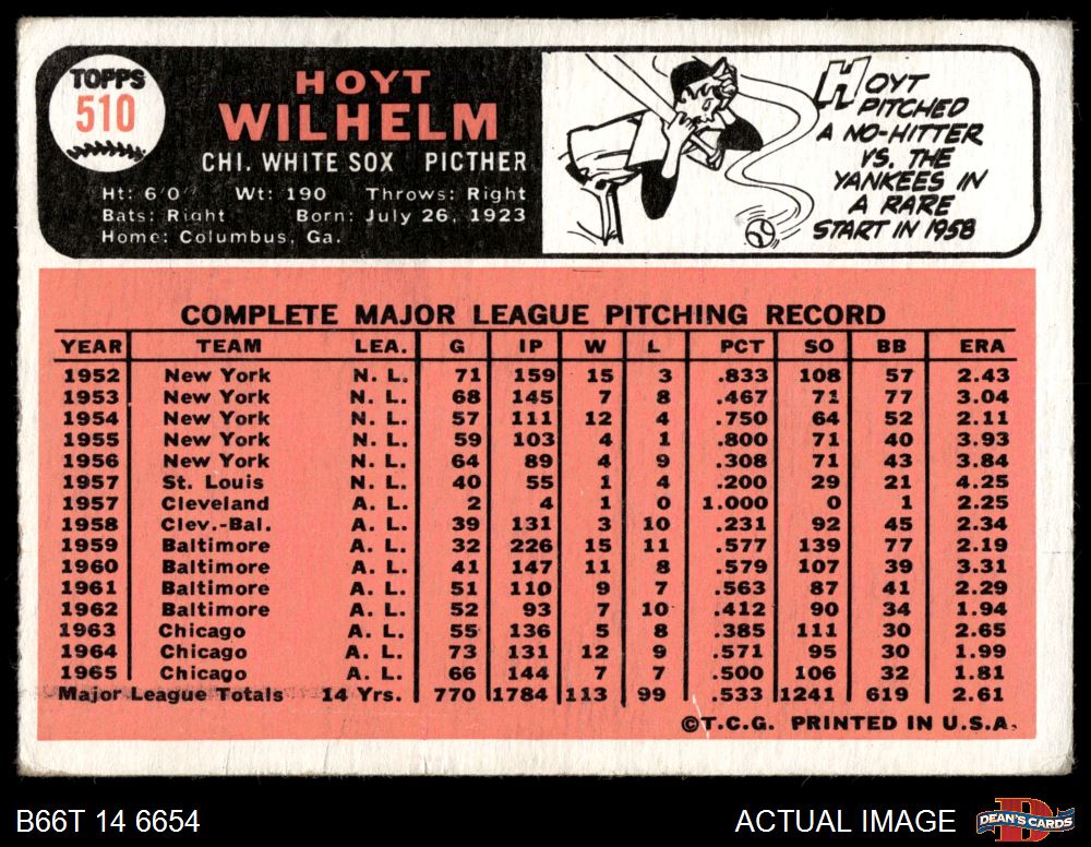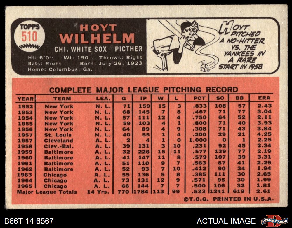 1966 Topps #510 Hoyt Wilhelm 3 - VG