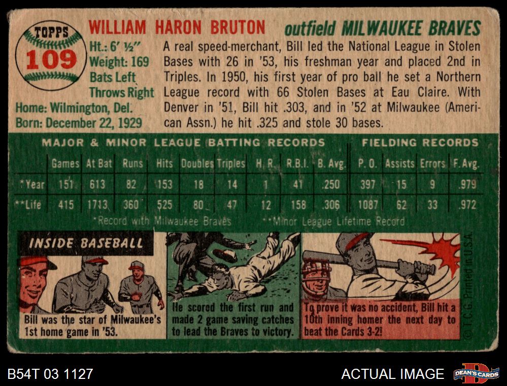 1954 Topps #109 Billy Bruton AUTHENTIC