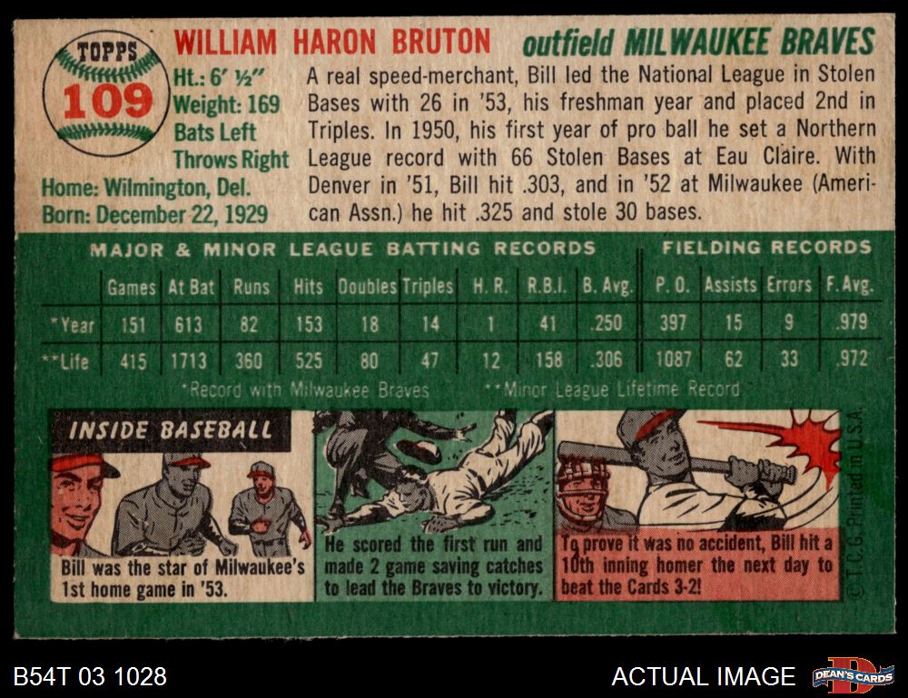 1954 Topps #109 Billy Bruton