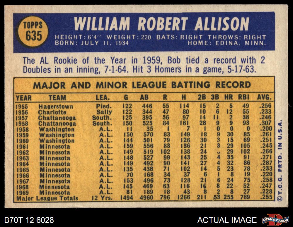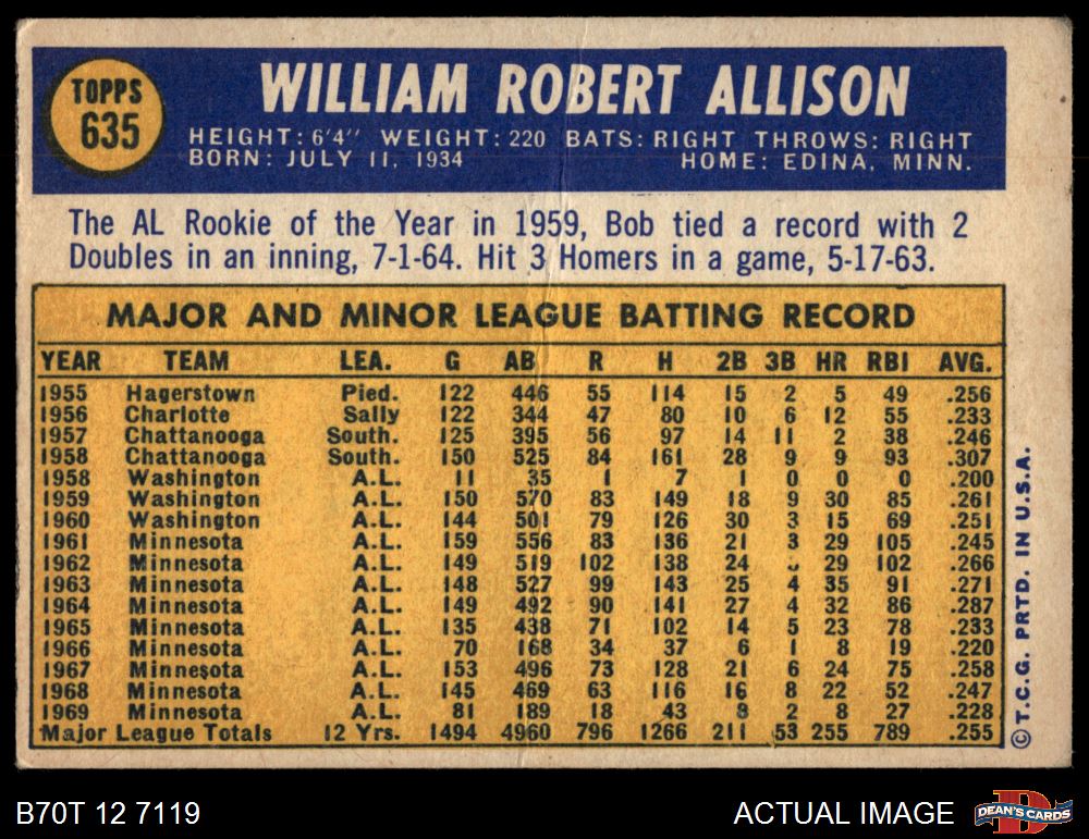 1970 Topps #635 Bob Allison
