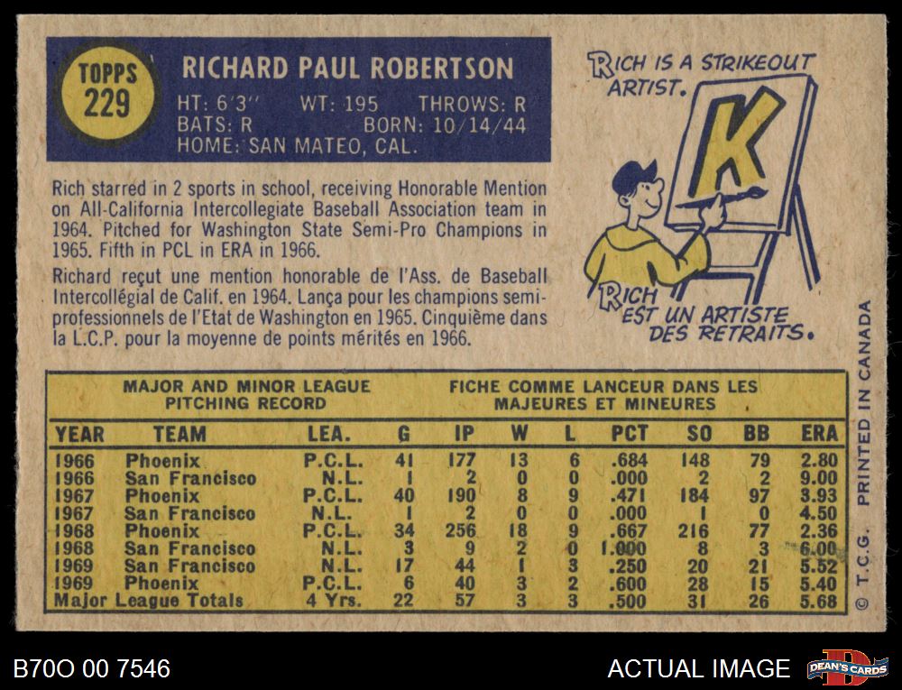 1970 O-Pee-Chee #229 Rich Robertson 7.5 - NM+