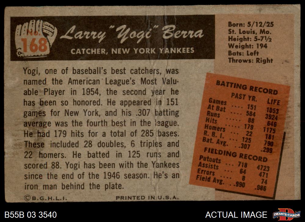 1955 Bowman #168 Yogi Berra 1 - POOR