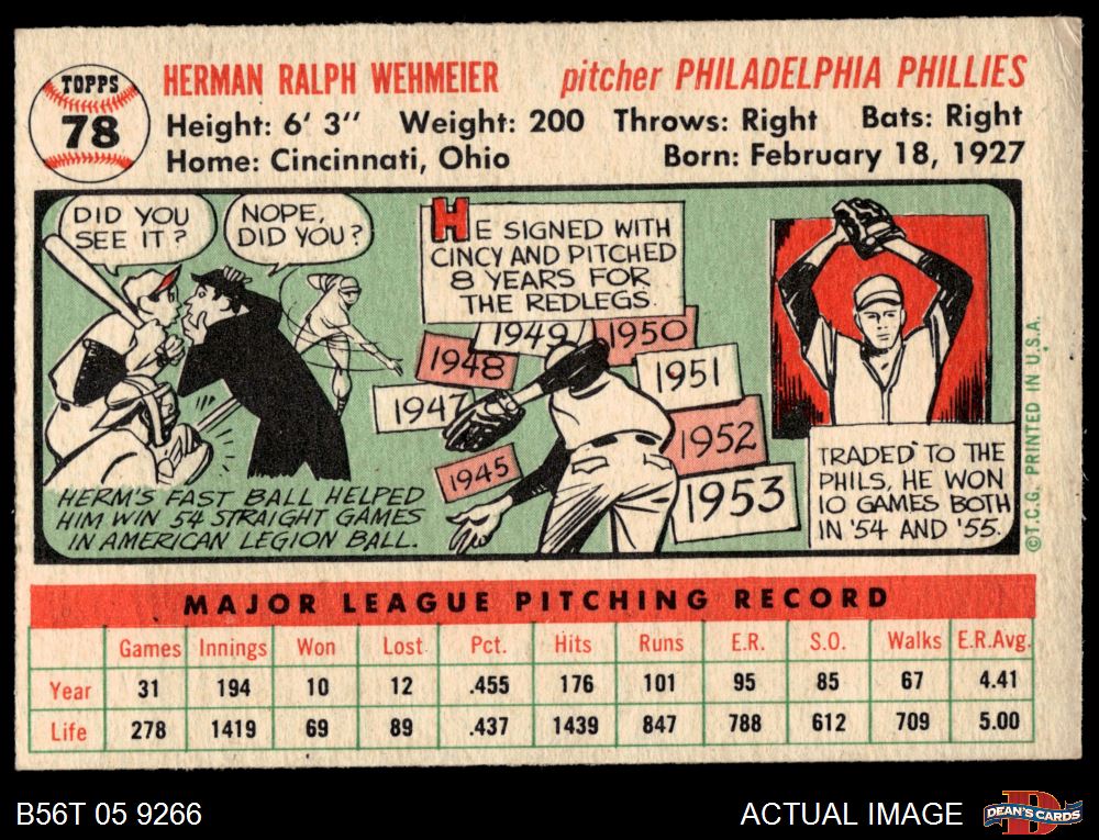 1956 Topps #78 Herm Wehmeier 5 - EX