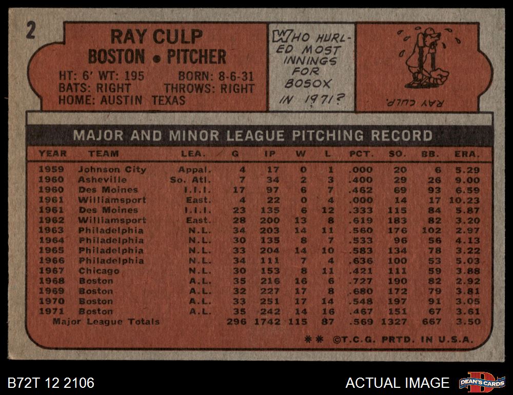 1972 Topps #2 Ray Culp 2 - GOOD