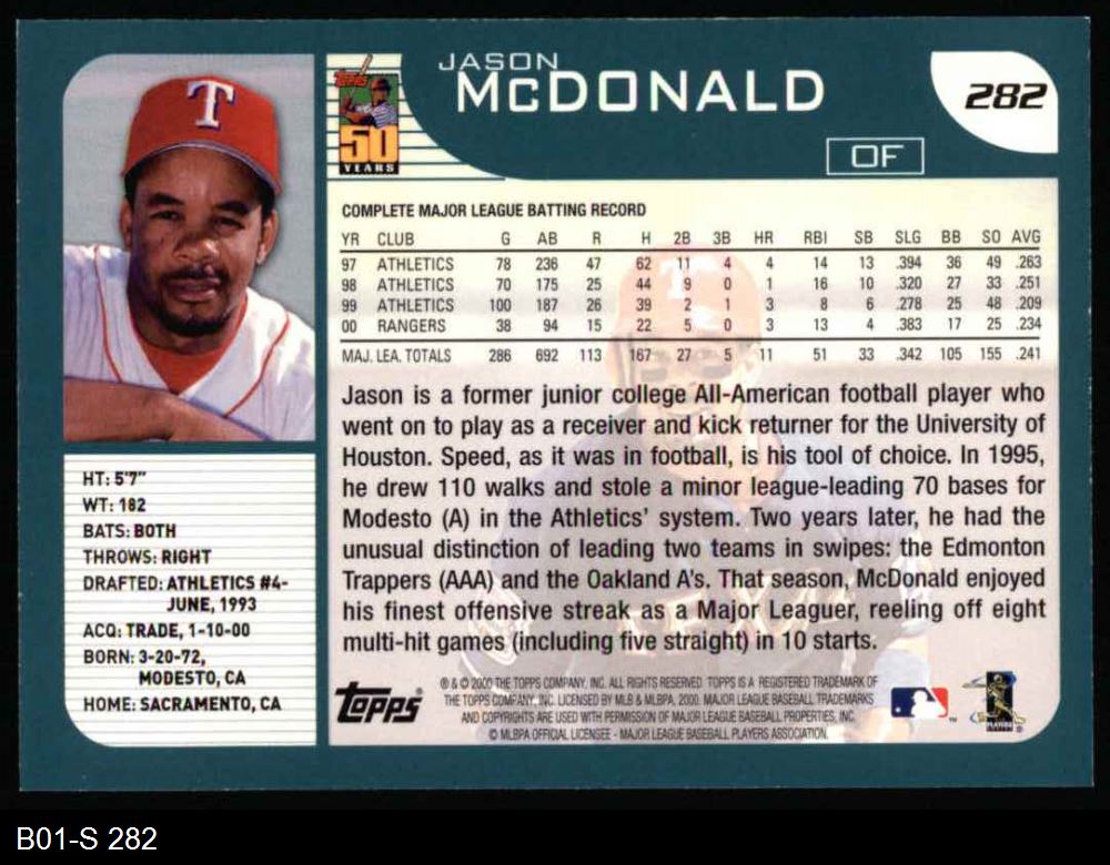 2001 Topps #282 Jason McDonald 8 - NM/MT