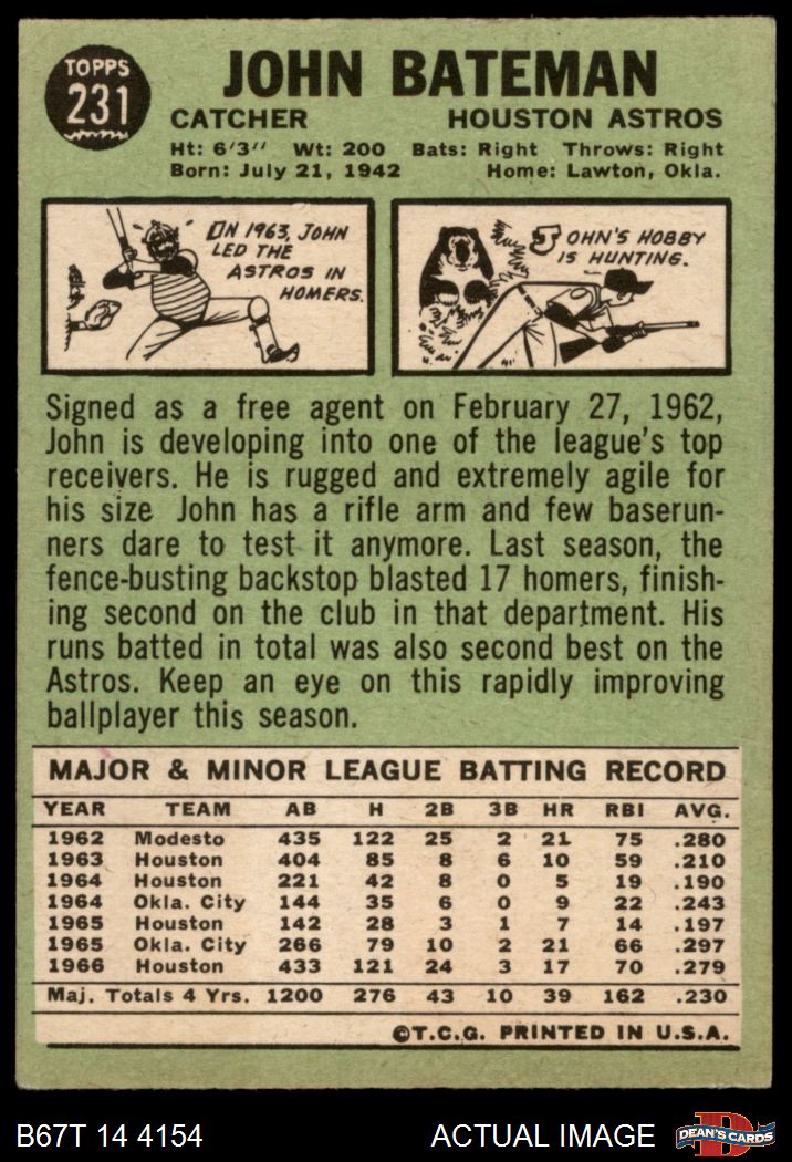 1967 Topps #231 John Bateman 2 - GOOD