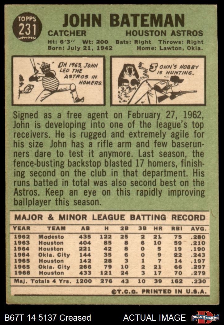 1967 Topps #231 John Bateman 3.5 - VG+