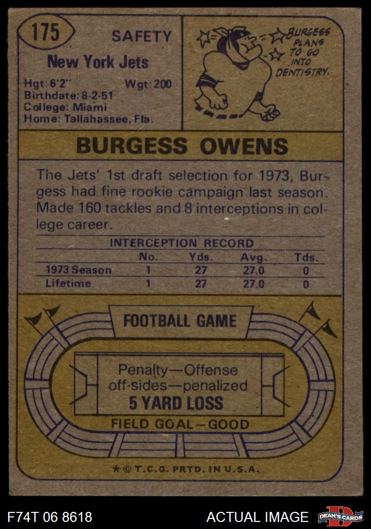 1974 Topps #175 Burgess Owens