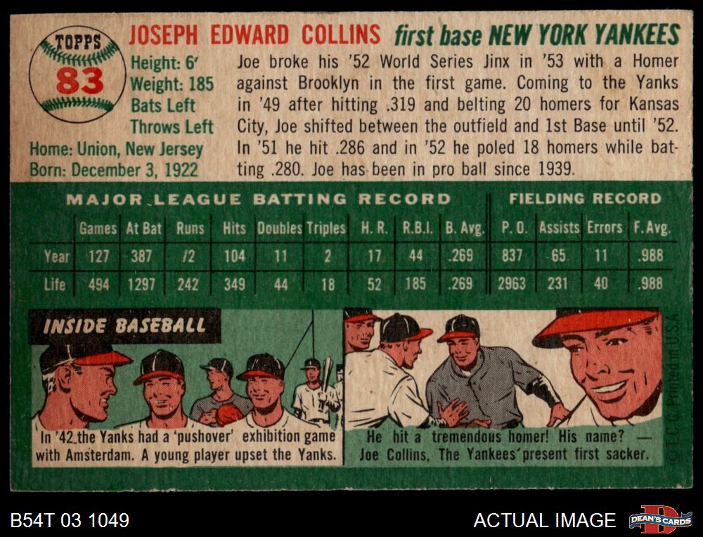 1954 Topps #83 Joe Collins 6 - EX/MT