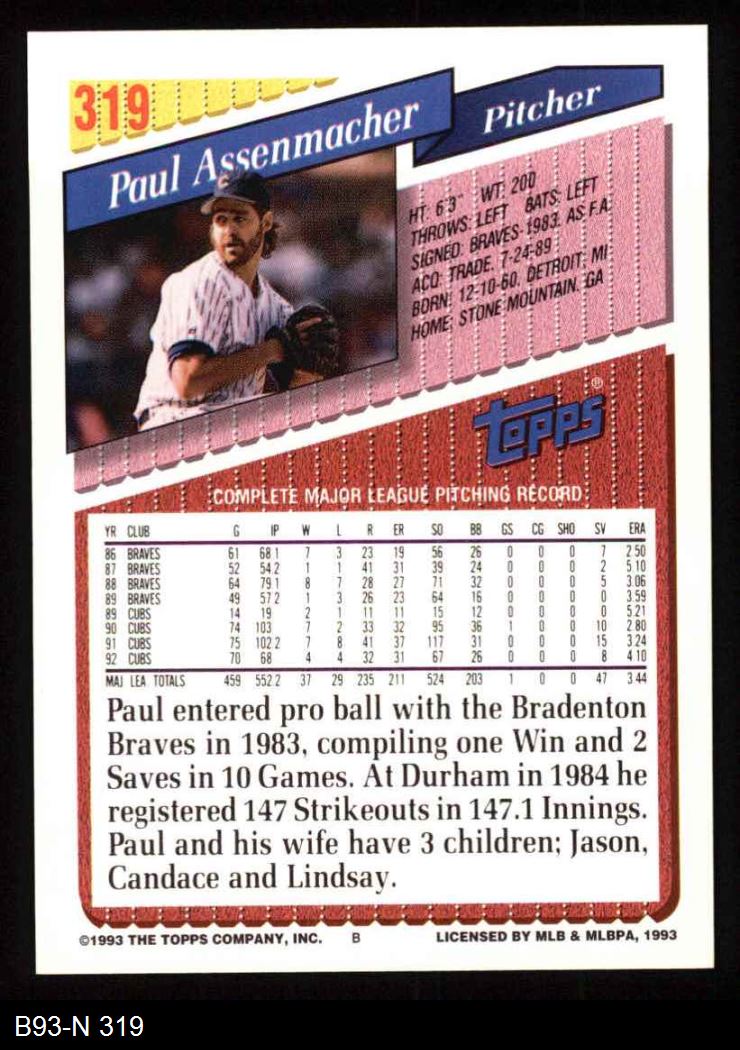 1993 Topps Baseball Cards (4,006 available)1993 Topps Cubs (161 available)