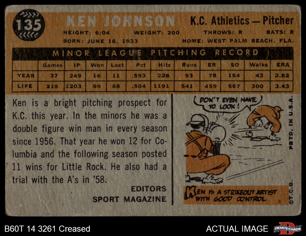 1960 Topps #135 - Ken Johnson Rookie Star 1 - POOR