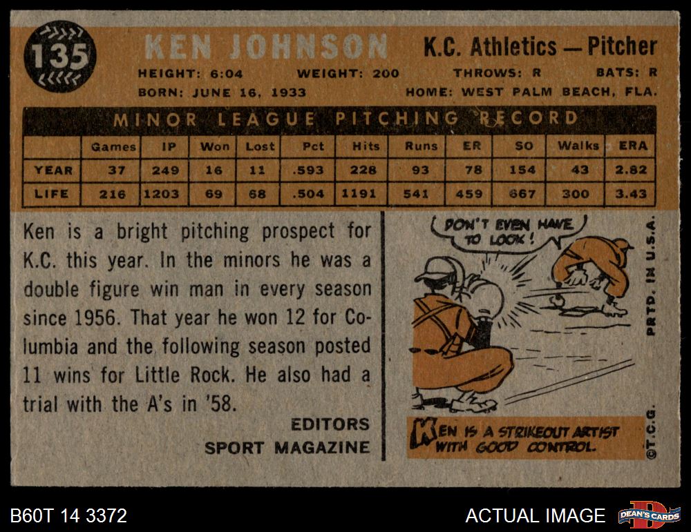 1960 Topps #135 - Ken Johnson Rookie Star 5 - EX