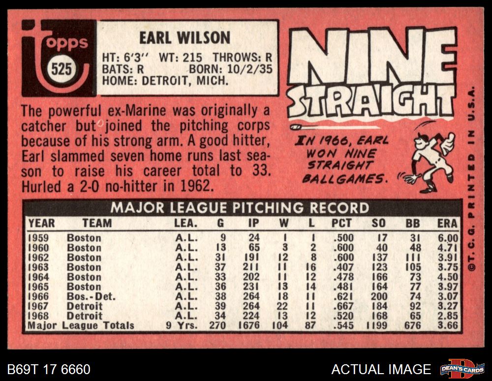 1969 Topps #525 Earl Wilson