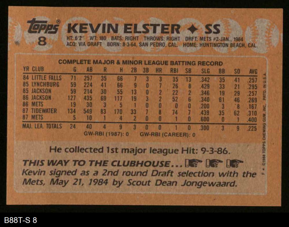1988 Topps #8 Kevin Elster